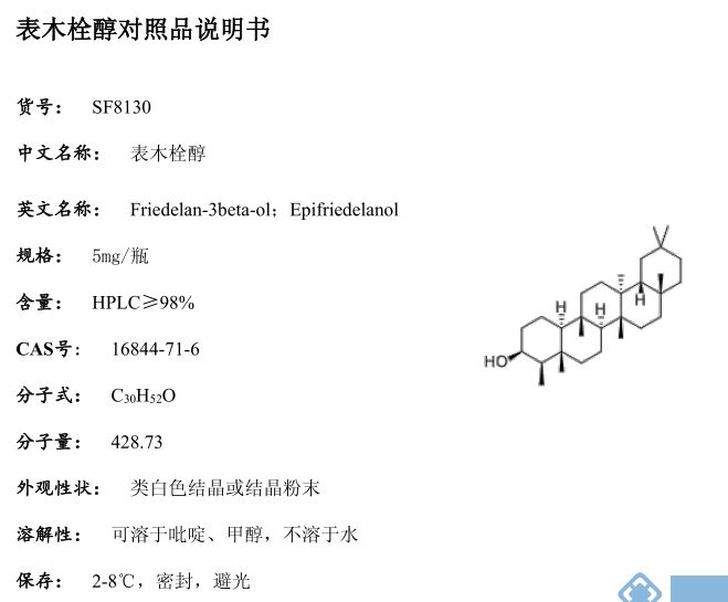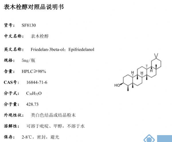 产品名称: Friedelan-3beta-ol;表木栓醇
